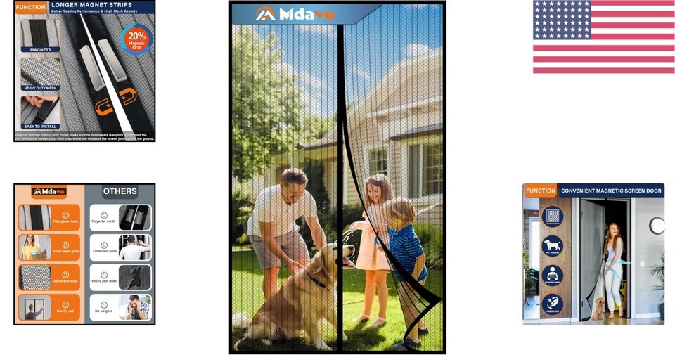 Features: Easy To Install,Self-Adhesive,Keeps Bugs Out,Let Breeze In,Heavy Duty,Pet Friendly,Kid Friendly,Removable,Portable,Foldable,Washable,Open Easily,Close Automatically