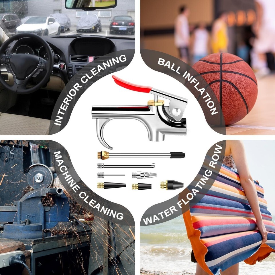 This comprehensive kit is perfect for all your air inflation and cleaning tasks, providing everything you need to get started.