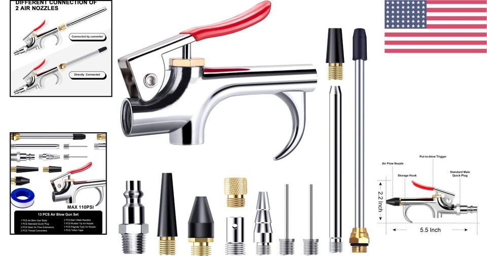 13 Pcs Air Nozzle Kit & Blow Gun for and similar items