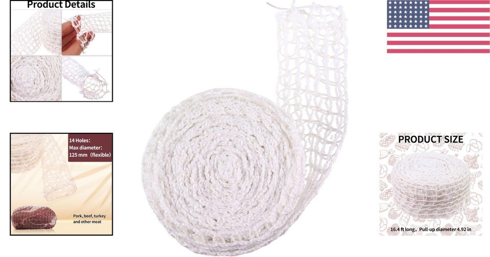 Transform your meat preparation experience with our All-Purpose Elastic Meat Wrap Butcher Netting Rolls. Experience the ideal blend of reliability and versatility, allowing you to confidently craft delicious roasts, smoked meats, and gourmet sausages. Designed not only for optimal cooking performance but also for the culinary enthusiast in mind, this netting elevates your cooking techniques.
