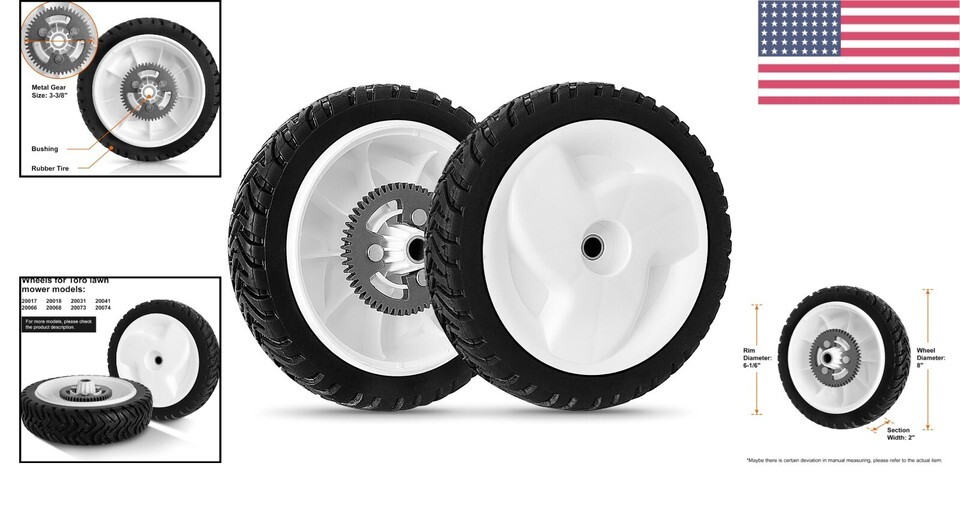 Replacement 8" Rear Drive Wheels for Toro Lawn Mowers - Easy Install, 2 Pack