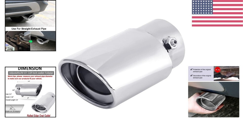 Revamp your vehicle's look with our Adjustable Chrome-Plated Exhaust Tips, designed not only to complement the aesthetic appeal of your car but also to ensure functionality and ease of installation. Measuring your tailpipe diameter is essential for a perfect fit ranging from 1.5" to 2.25", ensuring compatibility with almost any vehicle tailpipe.