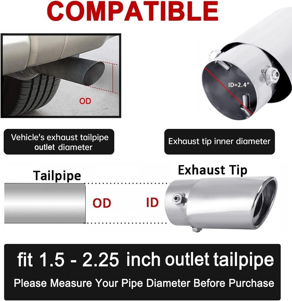 -Fits exhaust pipes with an outlet diameter of 1.5" - 2.25".