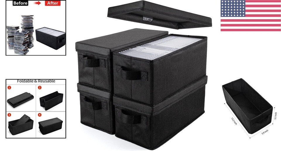Versatile Media Storage Boxes - 4 Pack for CDs, DVDs & More - Durable Black