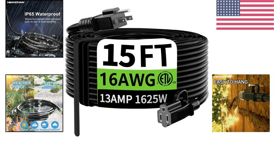 Weather-Resistant Heavy Duty 15 ft Extension Cord - Perfect for All Seasons