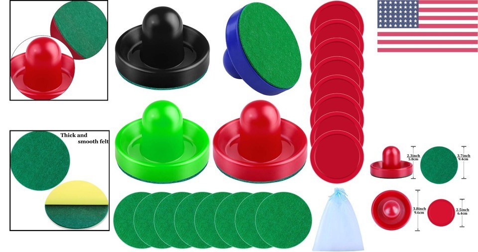 Ready to elevate your air hockey game? Our Deluxe Air Hockey Pushers Pucks Set offers not just aesthetics with its vibrant color palette but also premium quality designed for serious gameplay. The added benefit of thick pads ensures swift movement while safeguarding your table from scratches.