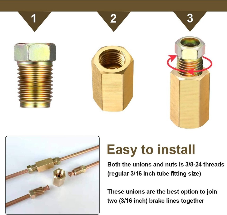 Compatible with 3/16 inch steel, poly coated, or copper brake lines.