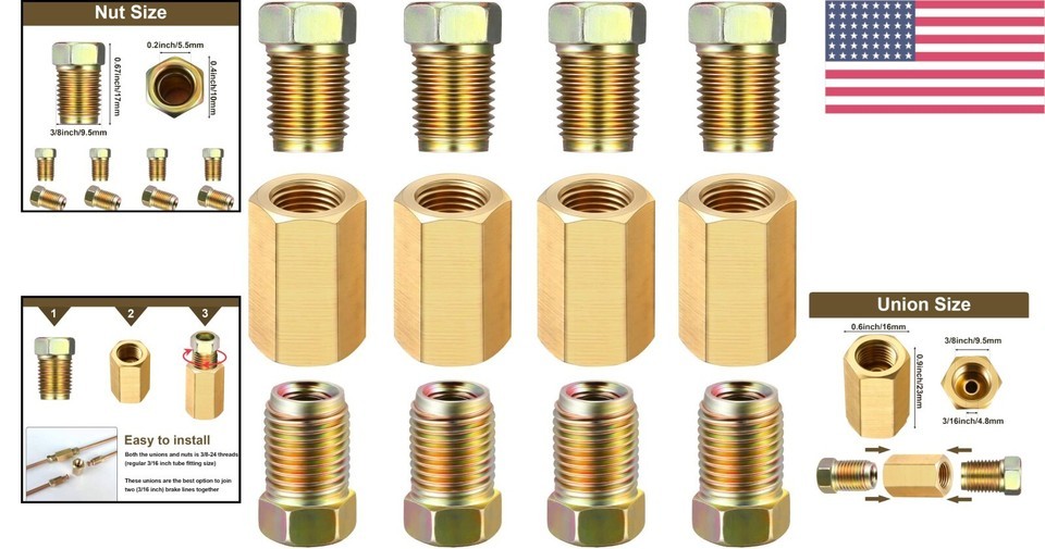 Quality 12-Piece Brass Brake Line Set with 3/8-24 Threads for Effective Repairs