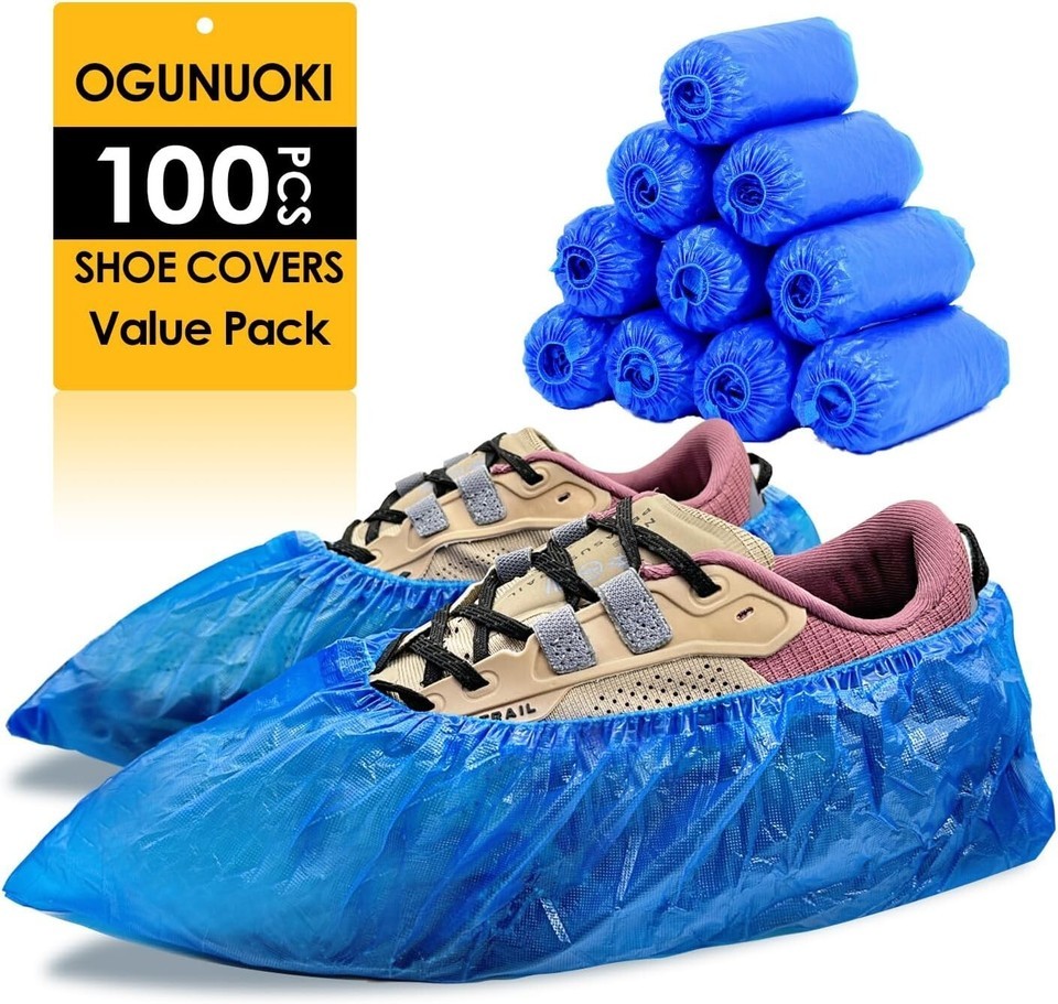 Each package includes 100 pieces (50 pairs) of disposable shoe covers.