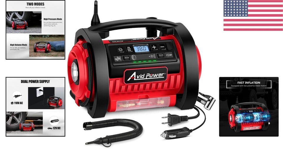 Dual Motor Air Compressor - Fast Tire Inflator with Inflation Deflation Modes
