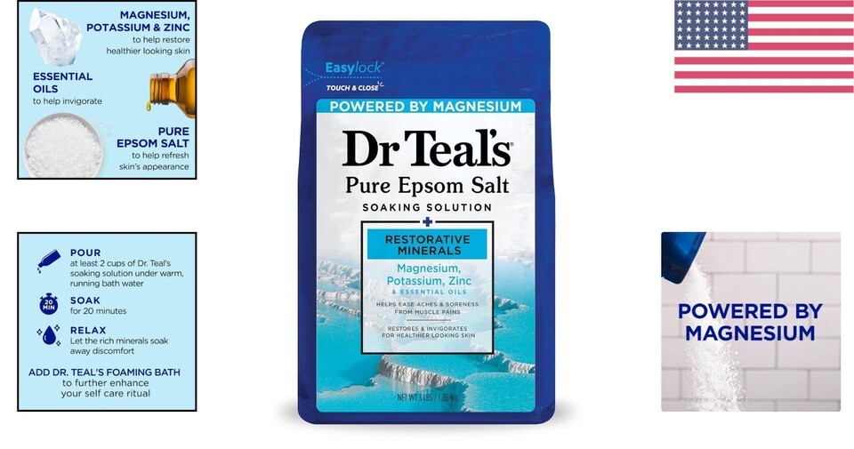 Epsom Salt Soak with Magnesium, Potassium Zinc - 3 lbs for Relaxing Experience