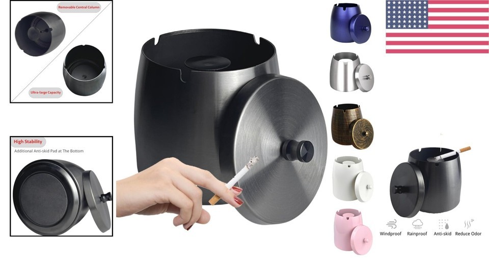 XL Retro Stainless Steel Outdoor Ashtray with Lid - Windproof & Smokeless