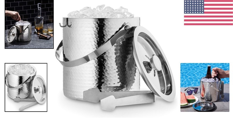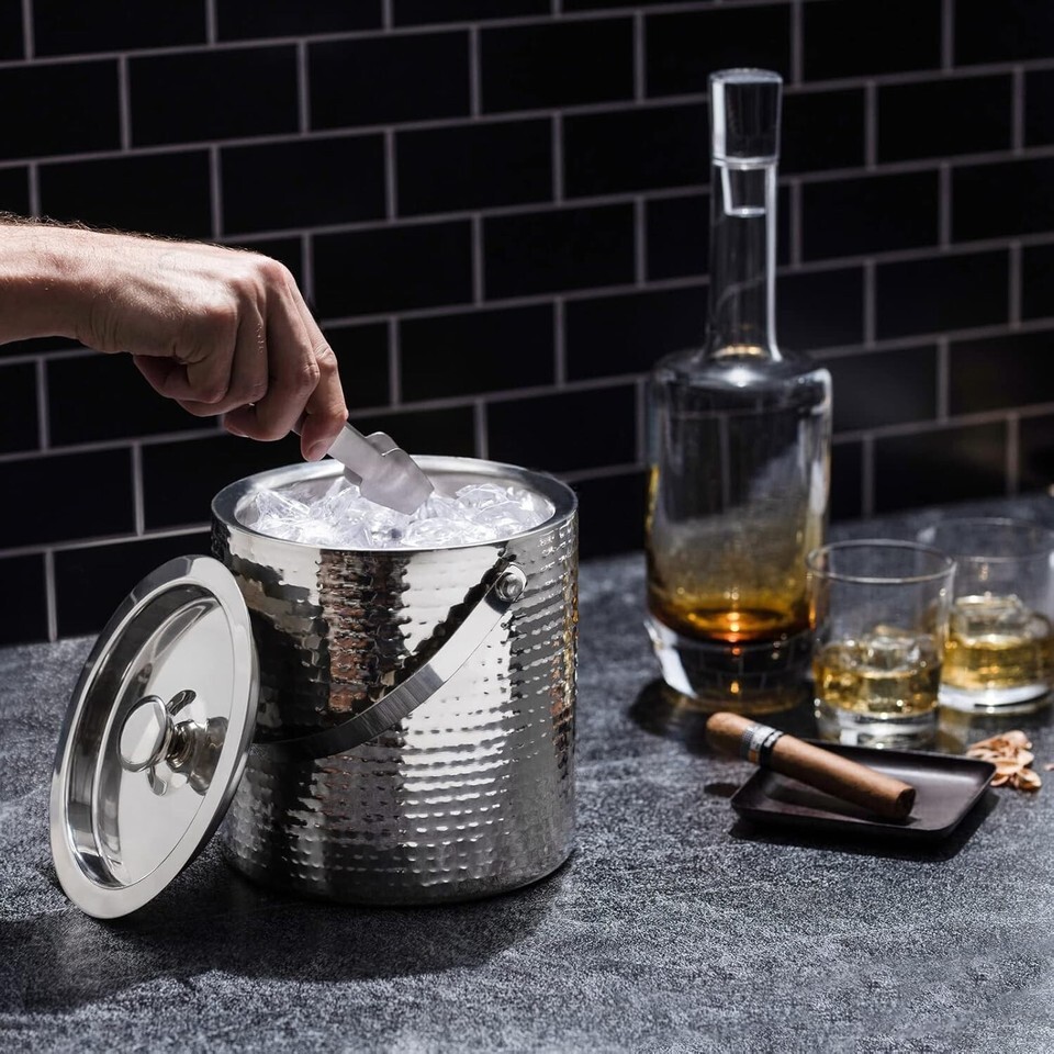This elegant double wall ice bucket is more than just a functional piece; it is a statement of elegance for your entertaining venues. The hammered finish and sleek design whisper luxury while maintaining practicality. Whether hosting a chilled cocktail party or providing a refreshing drink station at weddings, this ice bucket will impress your guests and elevate your entertaining style.