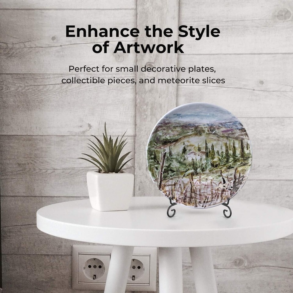 Elevate your decor with our Versatile Vintage Scrolling Design Plate Holders. Tailored to cradle your cherished items, these stands bring elegance and functionality together. The robust wrought iron construction ensures that your decorative plates, commemorative plaques, and photos remain secure while making a statement.