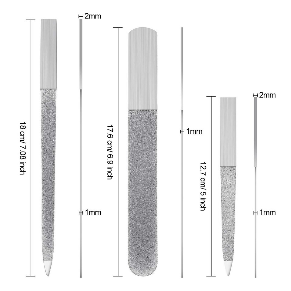 Comprehensive Package: Includes three essential tools: a compact double-sided small nail file, a large nail file with a cuticle pusher and cutter, and a sapphire foot nail file to meet all your grooming needs.