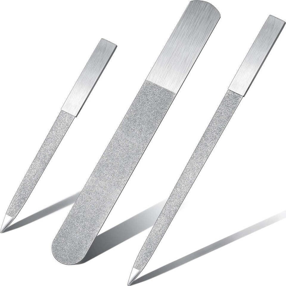 3-Piece Stainless Steel Nail Buffer Set - Double-Sided Manicure Pedicure Tools