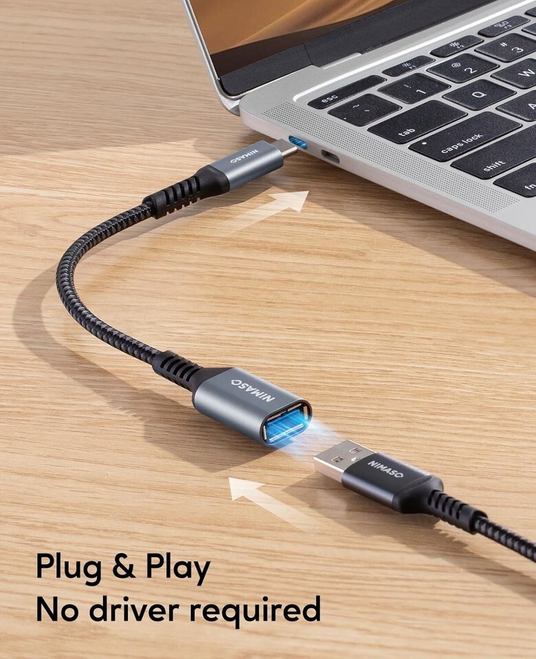 USB On-The-Go: Convert your USB-C (Thunderbolt 3) port into a USB 3.0 port seamlessly. This adapter allows you to connect external hard drives, flash drives, keyboards, hubs, mice, and other USB peripherals that support USB OTG function. Enable your smartphone, tablet, or laptop to read and transfer data effortlessly.