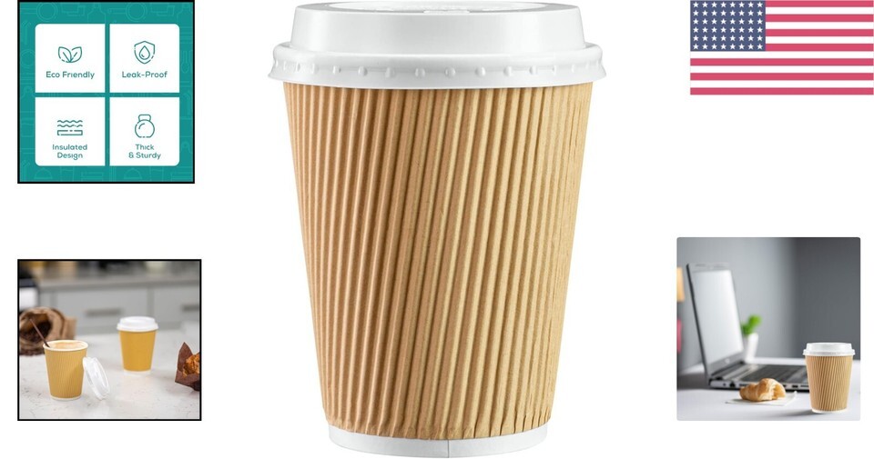 50 Sets of 12 oz Insulated Kraft Ripple Hot Cups with Lids - Stay Hot Anywhere!
