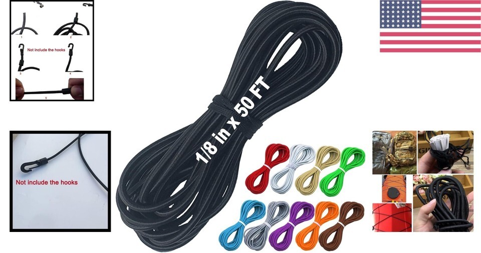 Durable 50' Elastic Bungee Cord - 1/8" UV-Resistant Shock Rope for DIY Projects