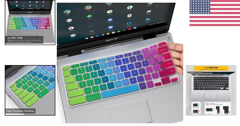 Dustproof Keyboard Cover for Acer Chromebook with Rainbow Colors & Easy Fit