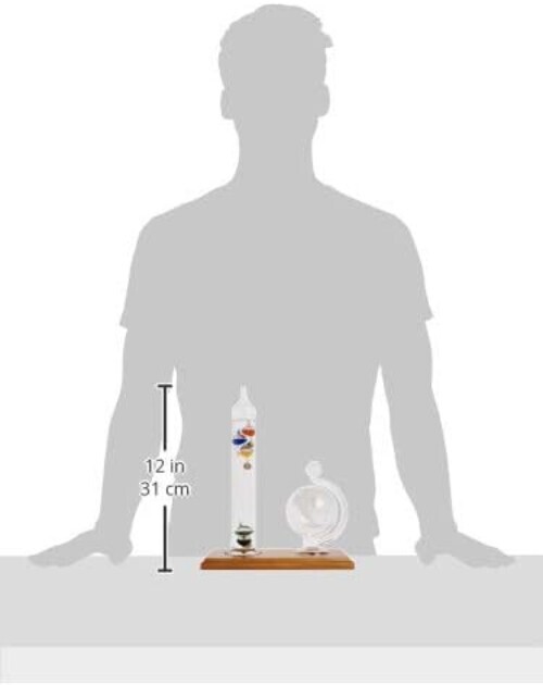 The stunning craftsmanship, displayed on a premium wooden base, ensures this set is a timeless addition to your home or office decor. Elevate your space with this captivating piece that entices both the eye and the mind. Perfect as a gift for loved ones or a treasured addition to your collection. Don?t just observe the weather; celebrate it with our Galileo Thermometer and Barometer Set.