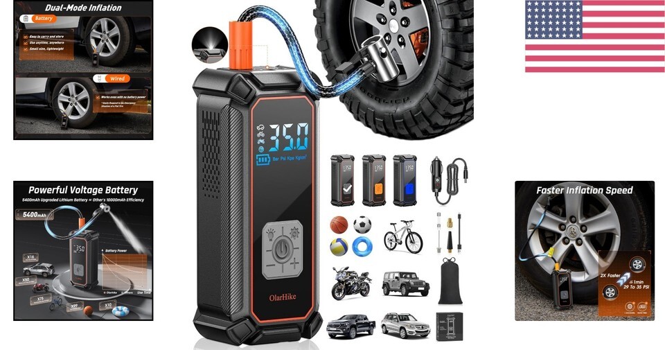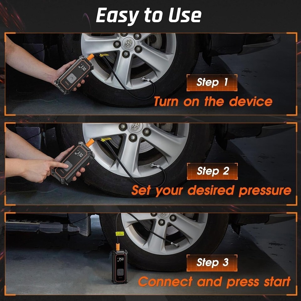 Effortlessly manage your tire inflation needs with our state-of-the-art Portable Tire Inflator. Engineered for efficiency and precision, this chic inflator is perfect for everyday use, travel, and adventures.