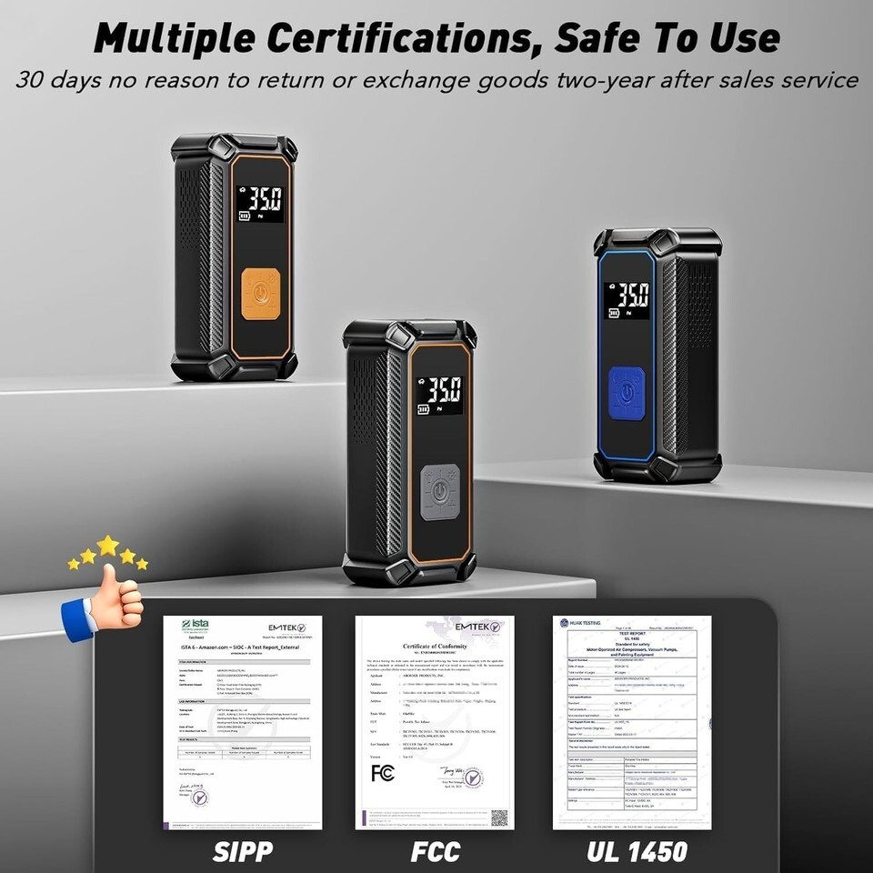 Precision Display Automatic Shut Off: Featuring a high-precision pressure sensor and LED display, this inflator automatically shuts off at the preset pressure to prevent over-inflation.
