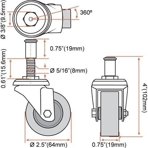 Transform the way you navigate your space with our high-quality 4-Pack of 2.5" Caster Wheels. Designed for maximum convenience and durability, these wheels provide an elegant solution to heavy lifting around your home or workshop. The non-marking polyurethane ensures your floors remain pristine, while the heavy-duty construction offers peace of mind. Perfect for everything from office chairs to workshop carts, why struggle when you can glide with grace?