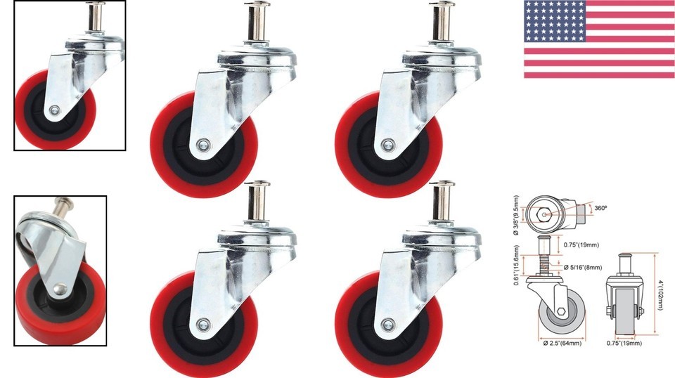 4-Pack 2.5" Caster Wheels with 100 lbs Capacity - Ideal for Furniture & Tools