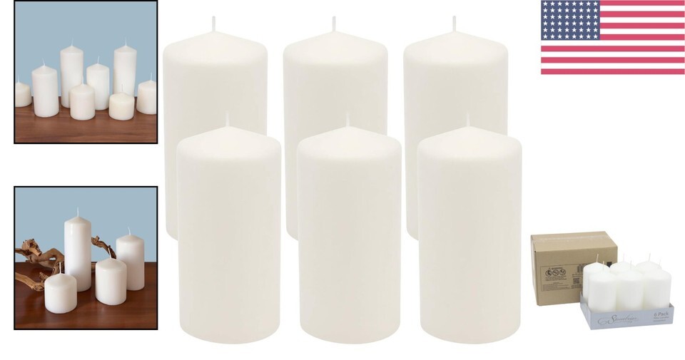 Timeless 3x6 Unscented White Pillar Candles - Clean & Smokeless Burn, 6 Pack