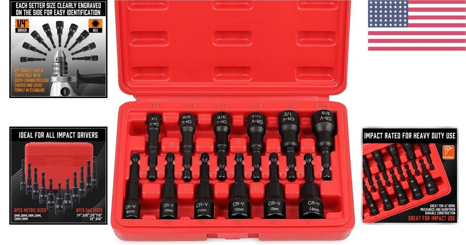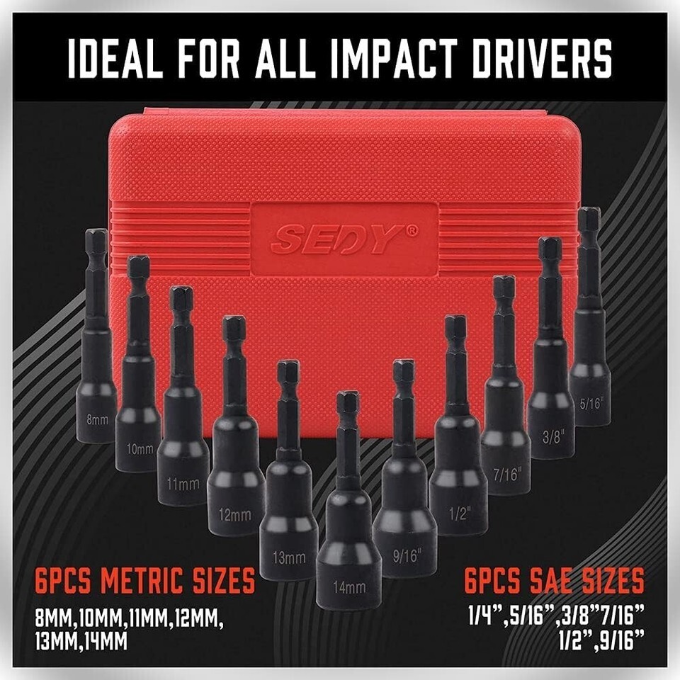 Versatile Use: This comprehensive 12-piece set includes both SAE and metric sizes, catering to a wide array of applications. It easily adapts to impact drills, bit drivers, and hex socket ratchets for your convenience.