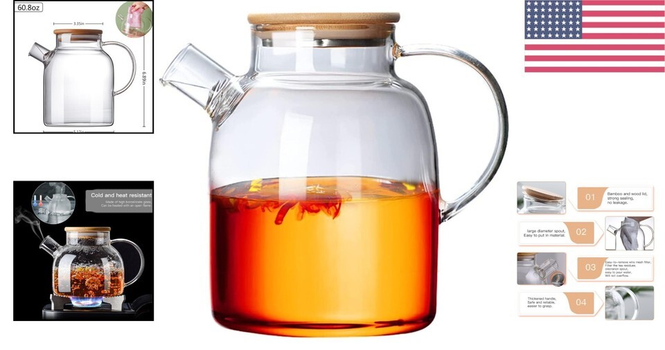 60.8oz Borosilicate Glass Teapot - Elegant Design for Hot and Cold Drinks