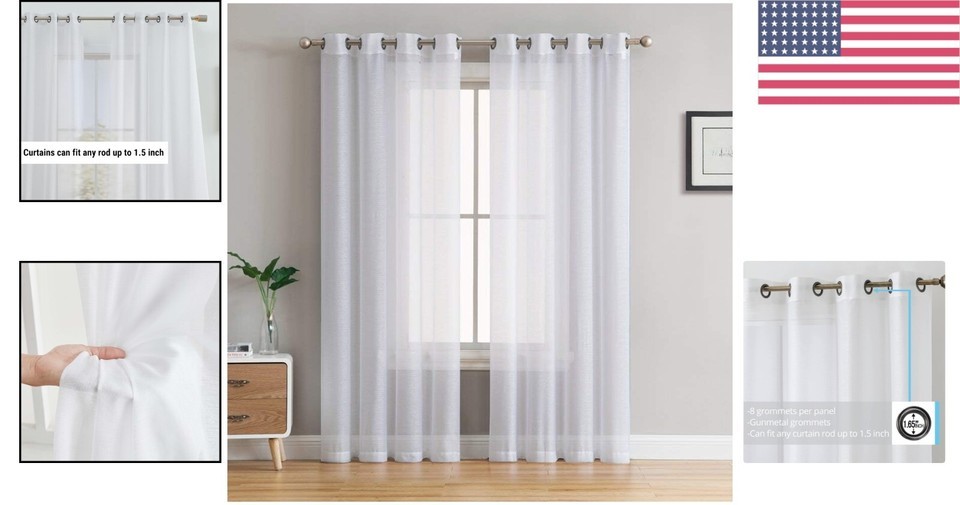 Stylish 72 Inch White Semi-Sheer Voile Curtains - Grommet Top for Easy Hanging
