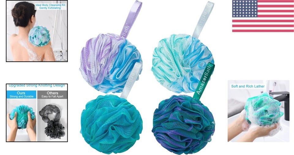 Indulge in an exquisite bathing experience with our Elegant 4-Pack Loofah Sponges. Crafted with a strong knotting design for ultimate durability and made from soft PE material for gentle exfoliation, these loofahs elevate your daily wash routine. Each sponge, larger than standard bath balls, provides a fluffy texture that produces an opulent lather with just a hint of your favorite body wash.