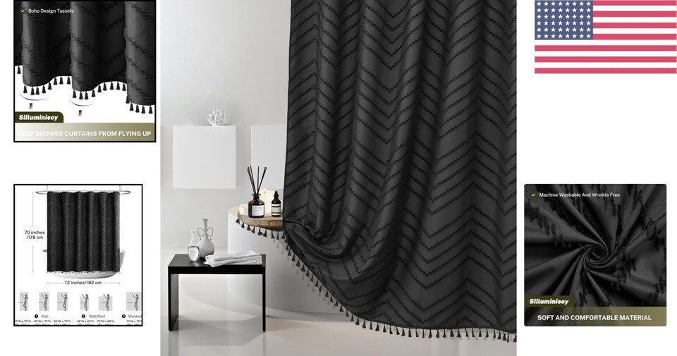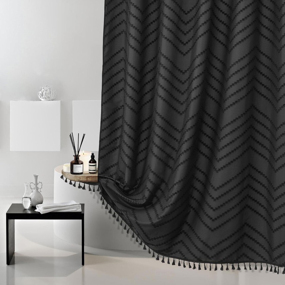 Modern Farmhouse Shower Curtain 72x70 – Blackout, Chevron, and Tassel Style