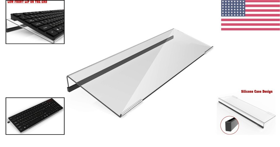 Clear Acrylic Tilted Stand for Comfortable Typing with Anti-Slip Strips, 17"