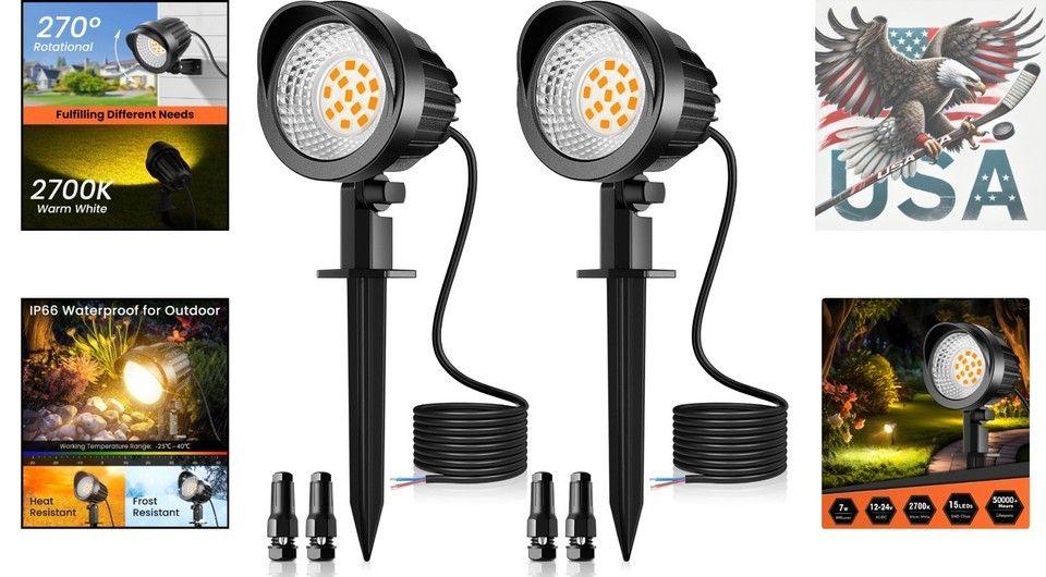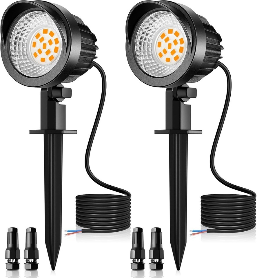 Adjustable 7W Garden Lights - 800LM Low Voltage Outdoor Spotlights, 2-Pack