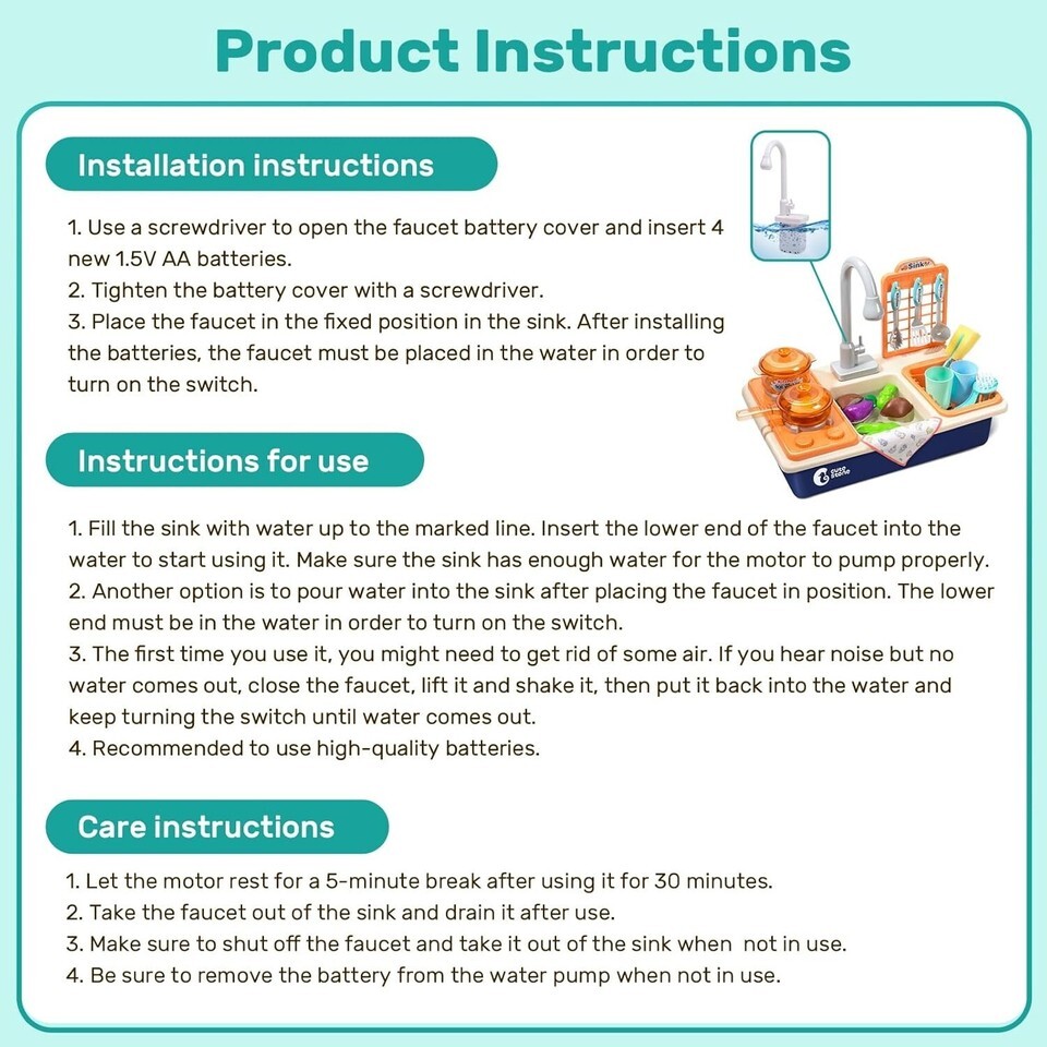 Play Sink with Working Faucet: The electric faucet design provides a smooth water flow, adding a touch of realism and extra fun to this play set.