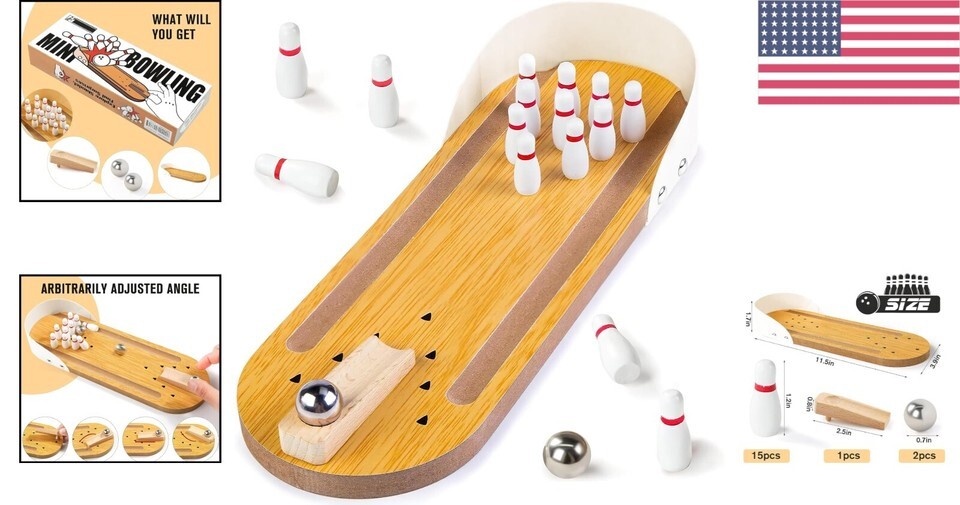 Complete Package: Includes 1 x Wooden Base, 10 x Bowling Pins, 1 x Ramp, 1 x Stainless Steel Bowling Ball. Dimensions: 11.6 x 3.9 inches.