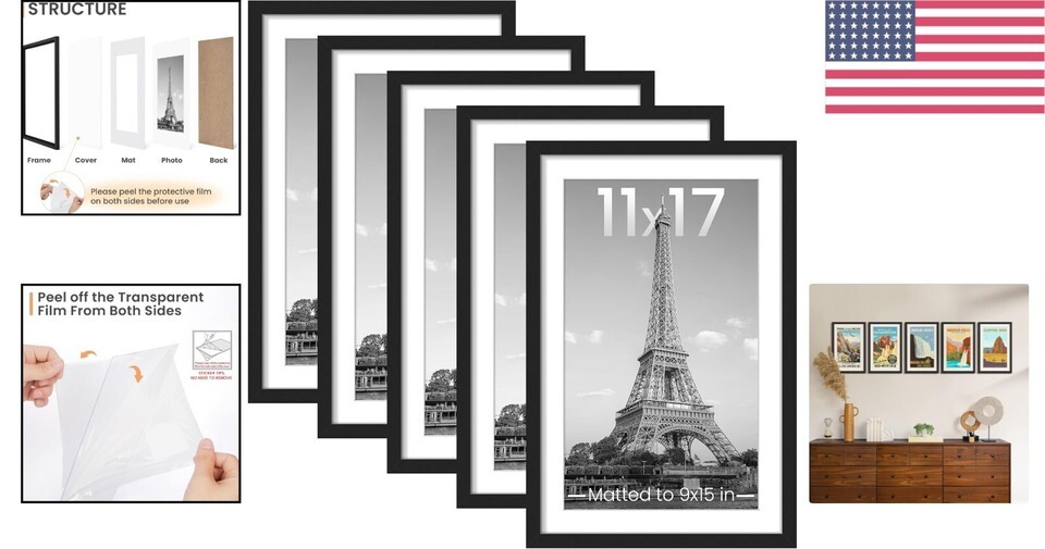 Elegant Black 11x17 Frame Set of 5 - Perfect for Home and Office Décor