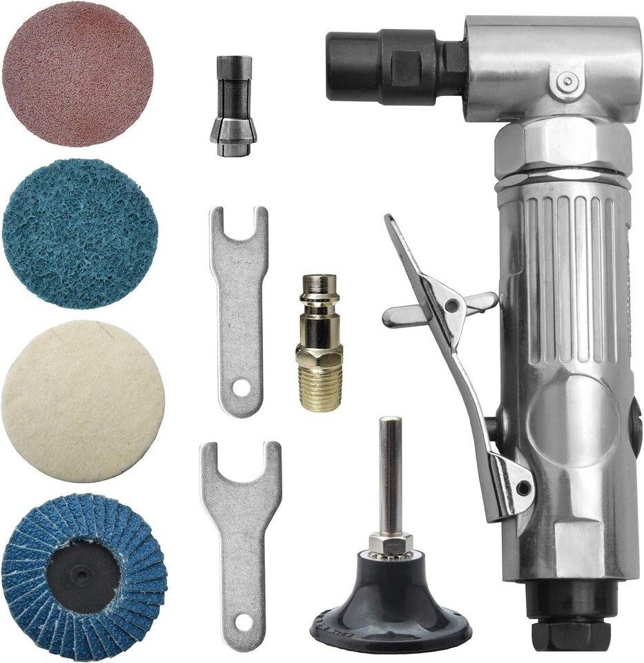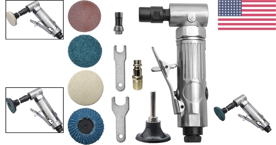 90-Degree Angle Air Die Grinder 1/4" - Lightweight Design with Accessories