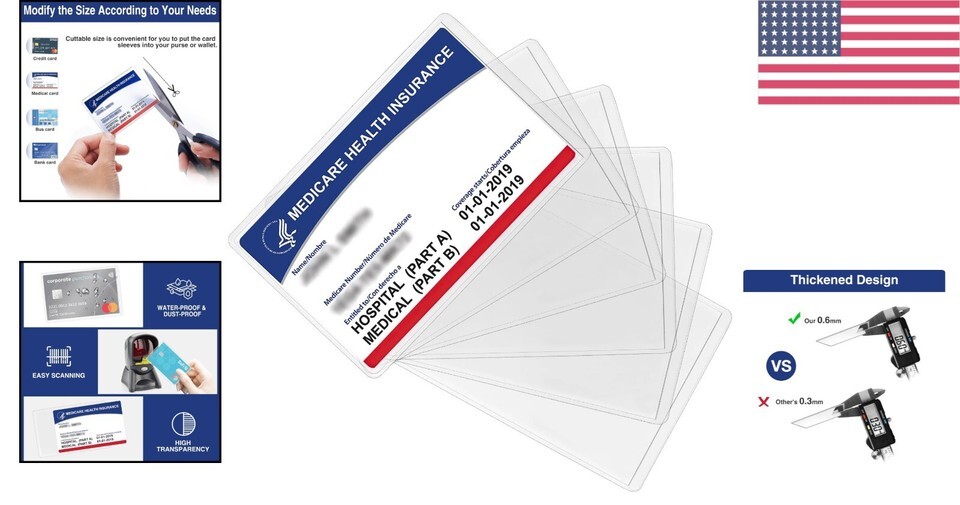 In a world where safeguarding your vital information and cards is crucial, our 20-Pack Heavy Duty Medicare Card Protector Sleeves offer peace of mind without compromising style. With their innovative waterproof design and enhanced thickness, these sleeves provide a reliable barrier against everyday wear and tear. Whether it's your Medicare card, credit card, or business card, you can trust that they are protected and easily accessible.