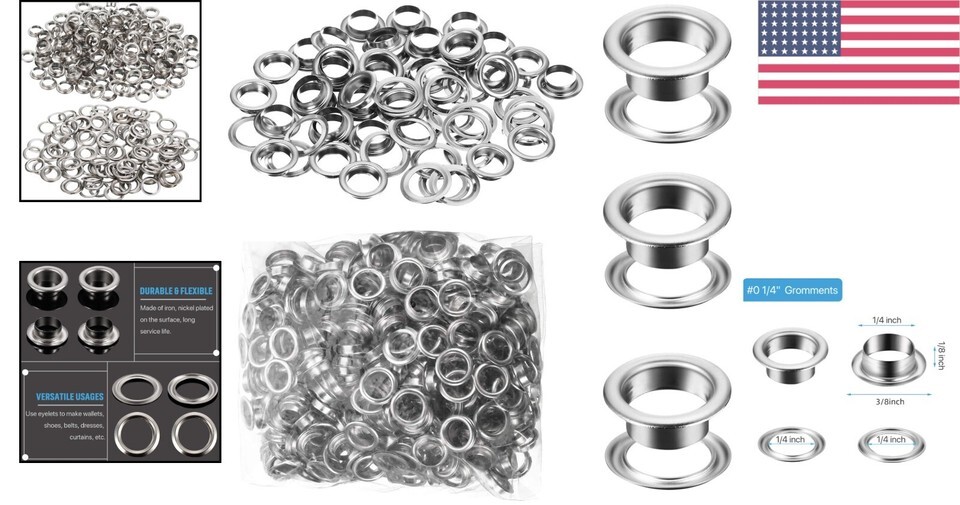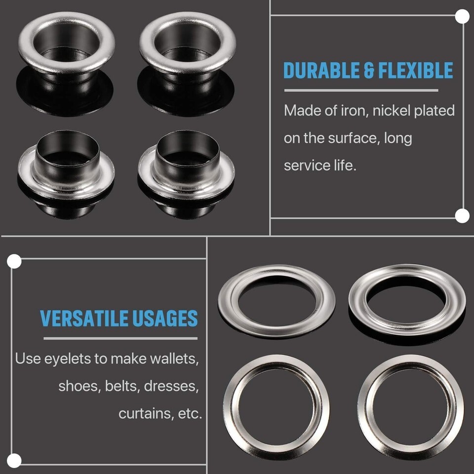 Elevate your crafting experience with our Durable 1/4 Inch Nickel Finish Grommet Eyelets. Whether you?re repairing, creating, or embellishing, these versatile tools will inspire your artistry while ensuring lasting durability. Don?t miss out on enhancing your projects?order your set today!