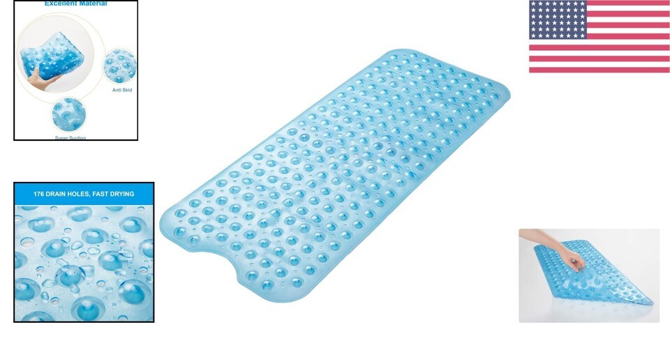 Experience the ultimate in safety and comfort with our Full-Size Non-Slip Bathtub Mat. Measuring a generous 40 x 16 inches, it is crafted from high-quality PVC and features 200 strategically placed suction cups that grip firmly to smooth surfaces, ensuring utmost stability in your shower or bathtub.