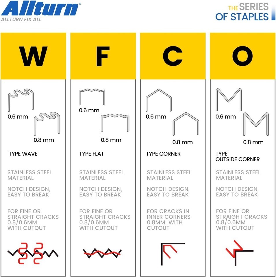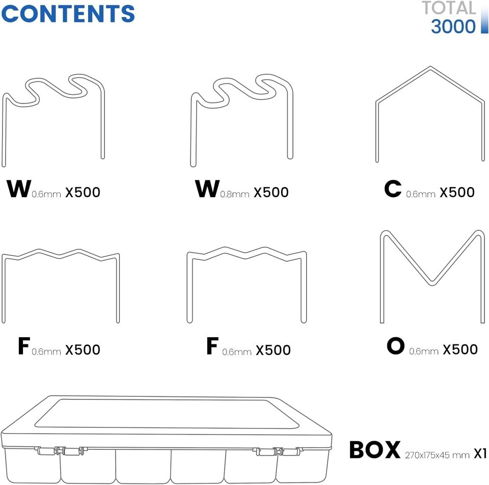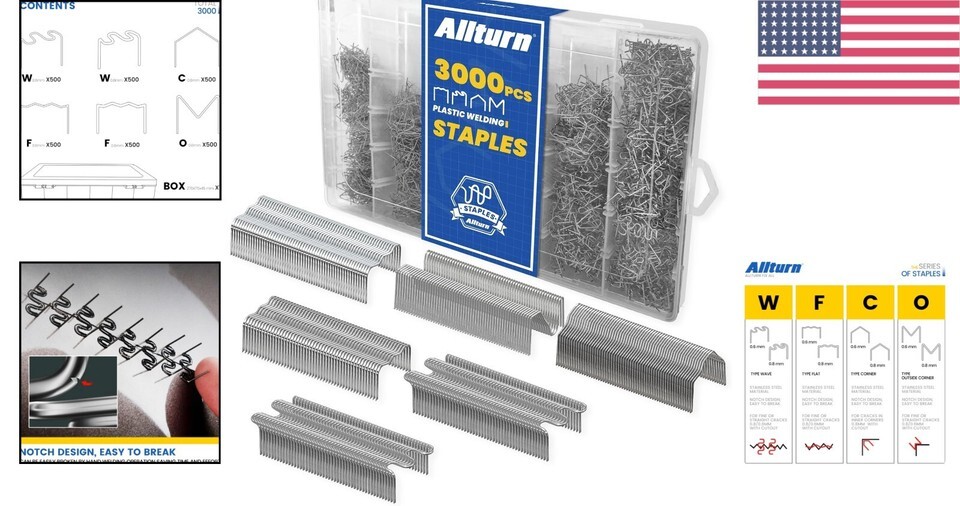 3000 Stainless Steel Plastic Welder Staples - 6 Types for Automotive Repair
