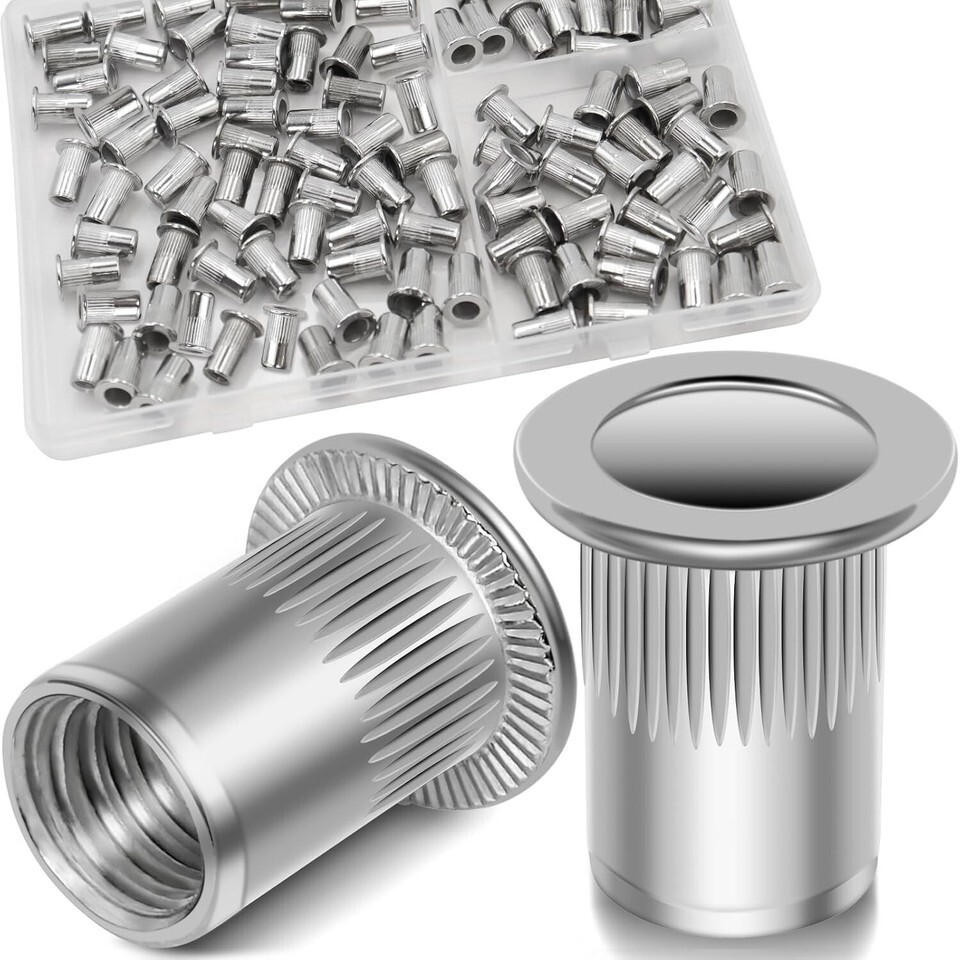 8-32 UNC Rivet Nut Set - 100 Pcs Corrosion-Resistant 304 Stainless Steel Inserts