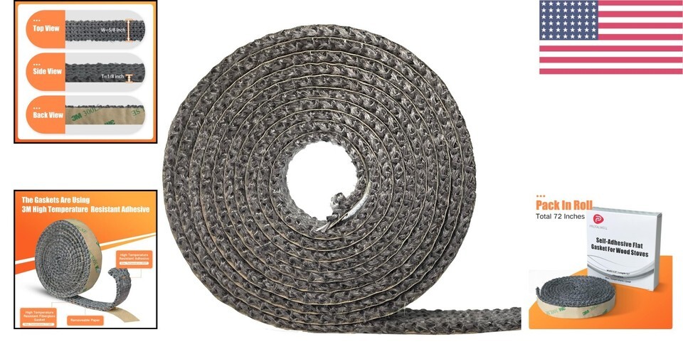 High-Temperature 72" Self-Adhesive Gasket Tape - Perfect for Stoves & Fireplaces
