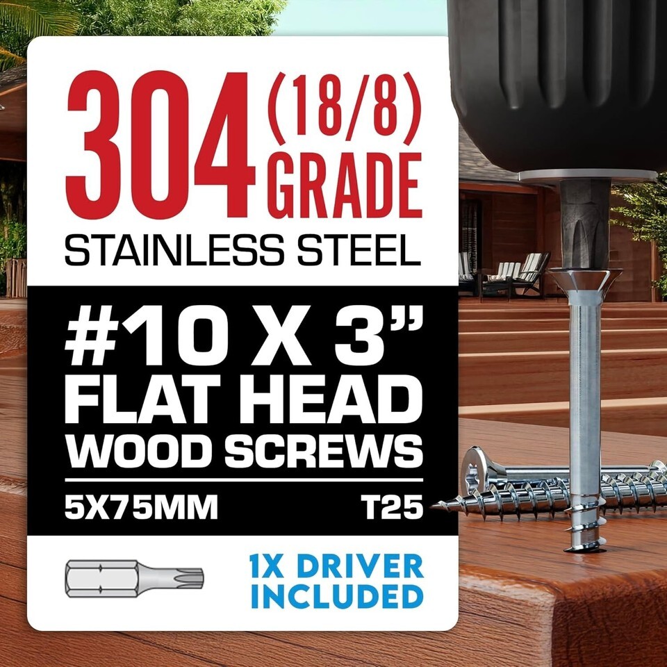 3-Inch Decking Screws with T25 Star Drive - Ideal for Coastal and Wet Areas