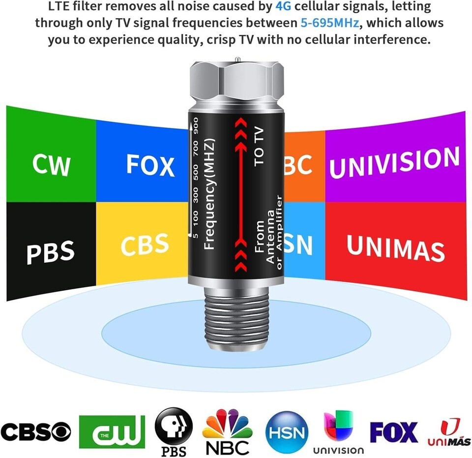 FILTERS ALL LTE SIGNAL NOISE: Effectively removes noise caused by 4G cellular signals, allowing only desirable TV frequencies through. Enjoy quality, crisp TV with no cellular interference.