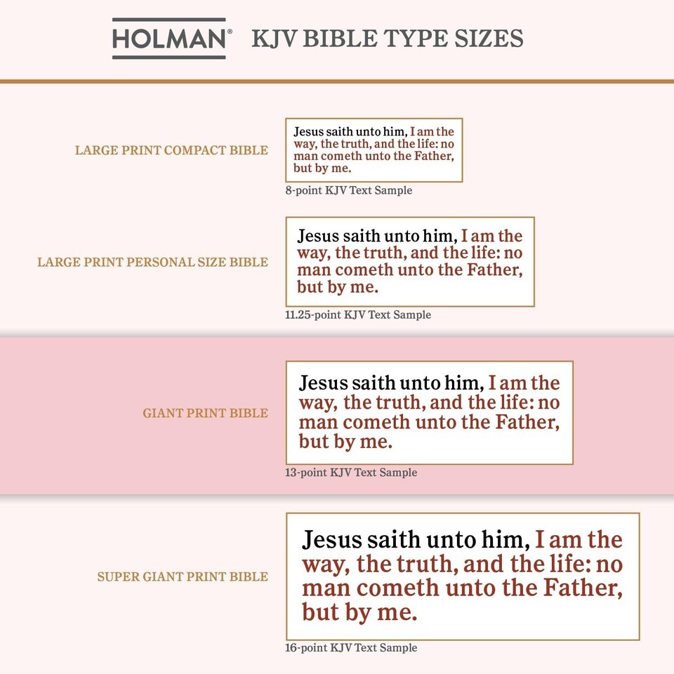 Giant Print: Enjoy easy readability with large, clear text designed to enhance your experience of scripture.